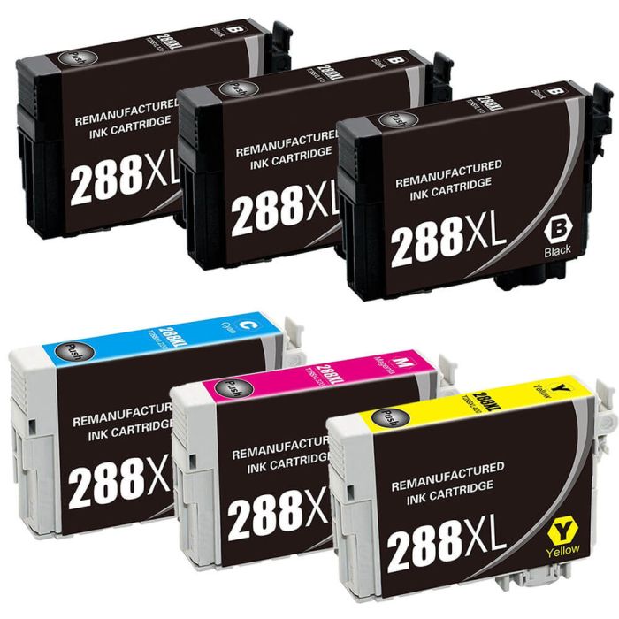 ComboInk Epson 288XL T288XL Series (6-pack) replacement High Yield Ink Cartridge (3x Black, 1x Cyan, 1x Magenta, 1x Yellow) will replace your original equipment manufacturer (OEM) cartridges for a fraction of the cost. Our replacement printer cartridges are professionally engineered to meet the highest quality and performance standard (ISO-9001). We also inspect our ink cartridges to be leak-free and have no print head nozzle clogging prior to stocking. Using our reliable, discount Epson 288XL T288XL Series (6-pack) replacement High Yield Ink Cartridge (3x Black, 1x Cyan, 1x Magenta, 1x Yellow), you'll get vibrant, high-quality results from your printer. Plus you can shop with confidence knowing that ComboInk inkjet cartridges are backed with a one-year 100% satisfaction guarantee.