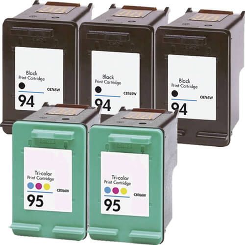 Hewlett Packard 94 / C8765WN Black & 95 / C8766WN Color (Pack of 5) Replacement Inkjet Cartridges for HP DeskJet / PhotoSmart / PSC Series Printers