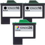 Lexmark 16 / 10N0016 Black & Lexmark 26 / 10N0026 Color (3-pack) Replacement High Yield Ink Cartridges (2x Black, 1x Color)